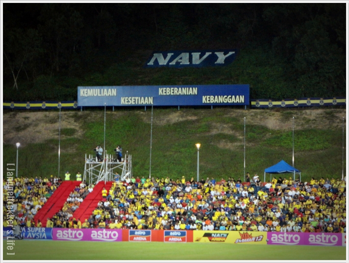 Nak dijadikan cerita, malam tu rupanya ada pulak perlawanan bola sepak Liga Super, di antara Perak menentang Selangor yang berlangsung di Stadium TLDM Lumut. Sebenarnya aku ni bukanlah peminat tegar bola sepak pon, tapi memandangkan malam tu aku dan kawan sebilik tak ada buat apa, maka kami pun terjebak la pergi ke stadium TLDM Lumut yang letaknya lebih kurang 3 km je dari hotel. Malam tu memang ramai la jugak penyokong Perak dan Selangor yang datang memenuhi stadium.